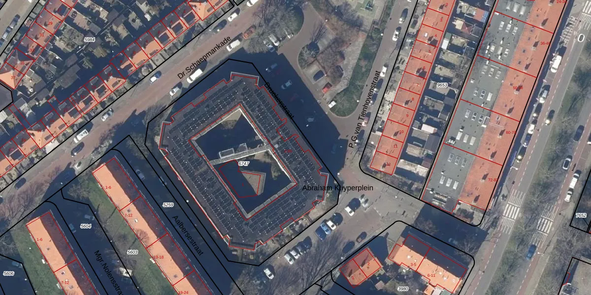 Het perceel waarop Druckerstraat 36 staat heeft een oppervlakte van 2738 m². Dit is een zeer groot perceel. De perceeloppervlakte wordt geregistreerd door het Kadaster. Gedetailleerde informatie over de maten van dit perceel kunt u vinden in het rapport Kadastrale kaart met maatvoering van Druckerstraat 36.