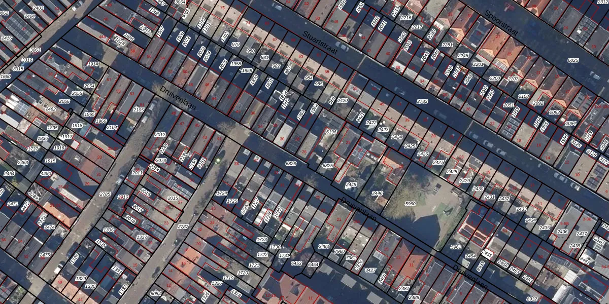 Gebruik de zoekbalk of klik op een perceel voor informatie over de adressen binnen dit perceel.