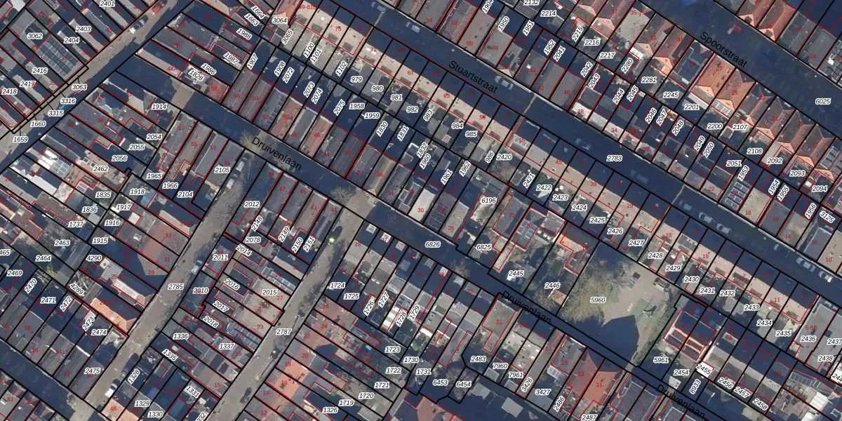 Het perceel waarop Druivenlaan 30 staat heeft een oppervlakte van 79 m². Dit is een klein perceel. De perceeloppervlakte wordt geregistreerd door het Kadaster. Gedetailleerde informatie over de maten van dit perceel kunt u vinden in het rapport Kadastrale kaart met maatvoering van Druivenlaan 30.