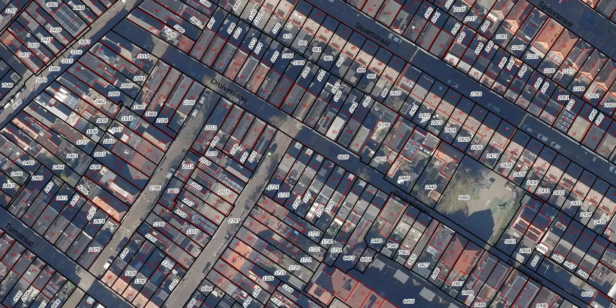 Het perceel waarop Druivenlaan 37 staat heeft een oppervlakte van 80 m². Dit is een klein perceel. De perceeloppervlakte wordt geregistreerd door het Kadaster. Gedetailleerde informatie over de maten van dit perceel kunt u vinden in het rapport Kadastrale kaart met maatvoering van Druivenlaan 37.