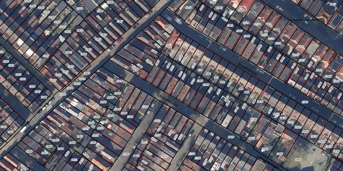Het perceel waarop Druivenlaan 50 staat heeft een oppervlakte van 78 m². Dit is een klein perceel. De perceeloppervlakte wordt geregistreerd door het Kadaster. Gedetailleerde informatie over de maten van dit perceel kunt u vinden in het rapport Kadastrale kaart met maatvoering van Druivenlaan 50.
