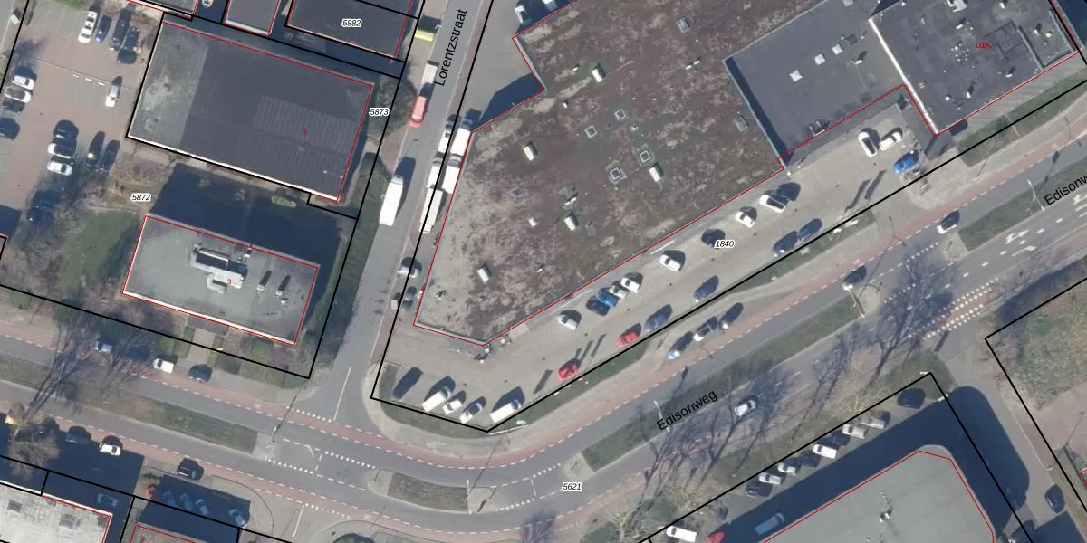 Het perceel waarop Edisonweg 1-F staat heeft een oppervlakte van 9575 m². Dit is een zeer groot perceel. De perceeloppervlakte wordt geregistreerd door het Kadaster. Gedetailleerde informatie over de maten van dit perceel kunt u vinden in het rapport Kadastrale kaart met maatvoering van Edisonweg 1-F.