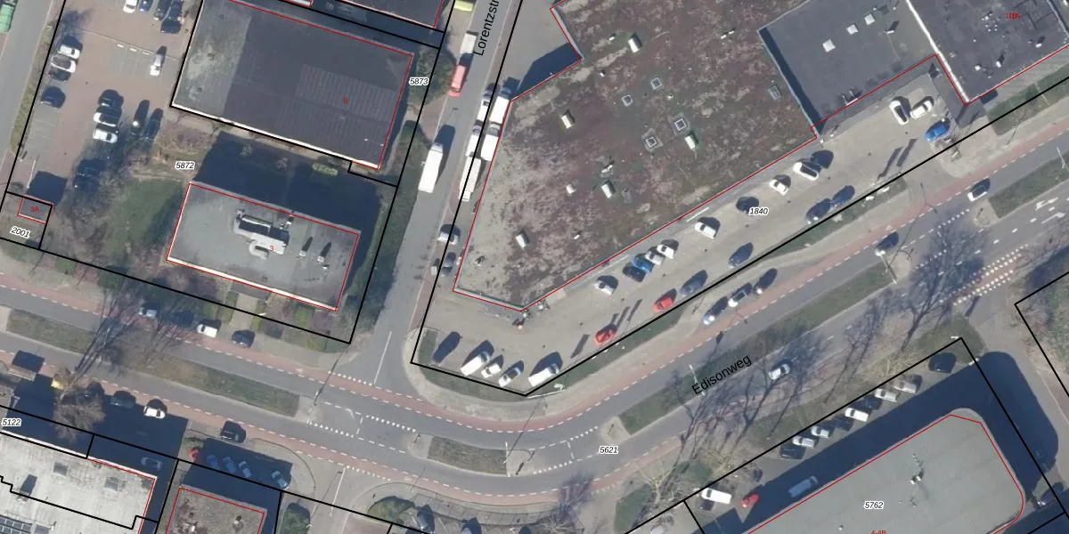 Het perceel waarop Edisonweg 1-G staat heeft een oppervlakte van 9575 m². Dit is een zeer groot perceel. De perceeloppervlakte wordt geregistreerd door het Kadaster. Gedetailleerde informatie over de maten van dit perceel kunt u vinden in het rapport Kadastrale kaart met maatvoering van Edisonweg 1-G.