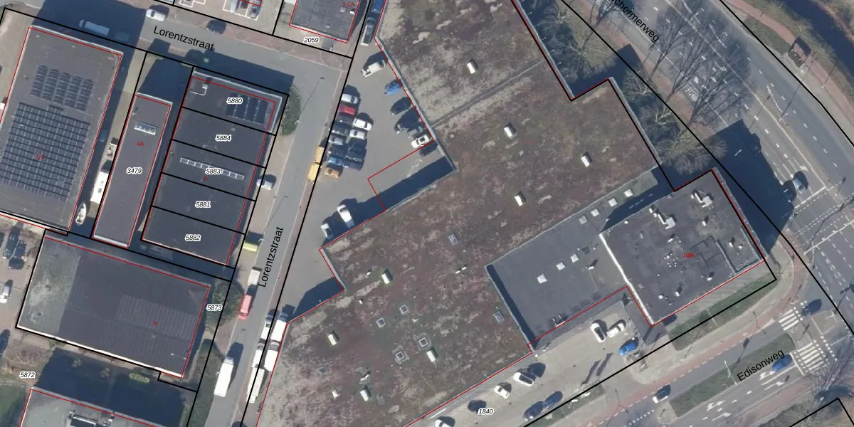 Het perceel waarop Edisonweg 1-M staat heeft een oppervlakte van 9575 m². Dit is een zeer groot perceel. De perceeloppervlakte wordt geregistreerd door het Kadaster. Gedetailleerde informatie over de maten van dit perceel kunt u vinden in het rapport Kadastrale kaart met maatvoering van Edisonweg 1-M.