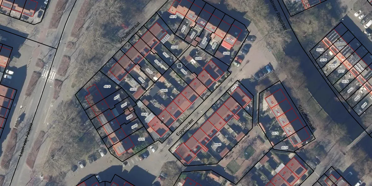 Het perceel waarop Eggestraat 21 staat heeft een oppervlakte van 617 m². Dit is een groot perceel. De perceeloppervlakte wordt geregistreerd door het Kadaster. Gedetailleerde informatie over de maten van dit perceel kunt u vinden in het rapport Kadastrale kaart met maatvoering van Eggestraat 21.