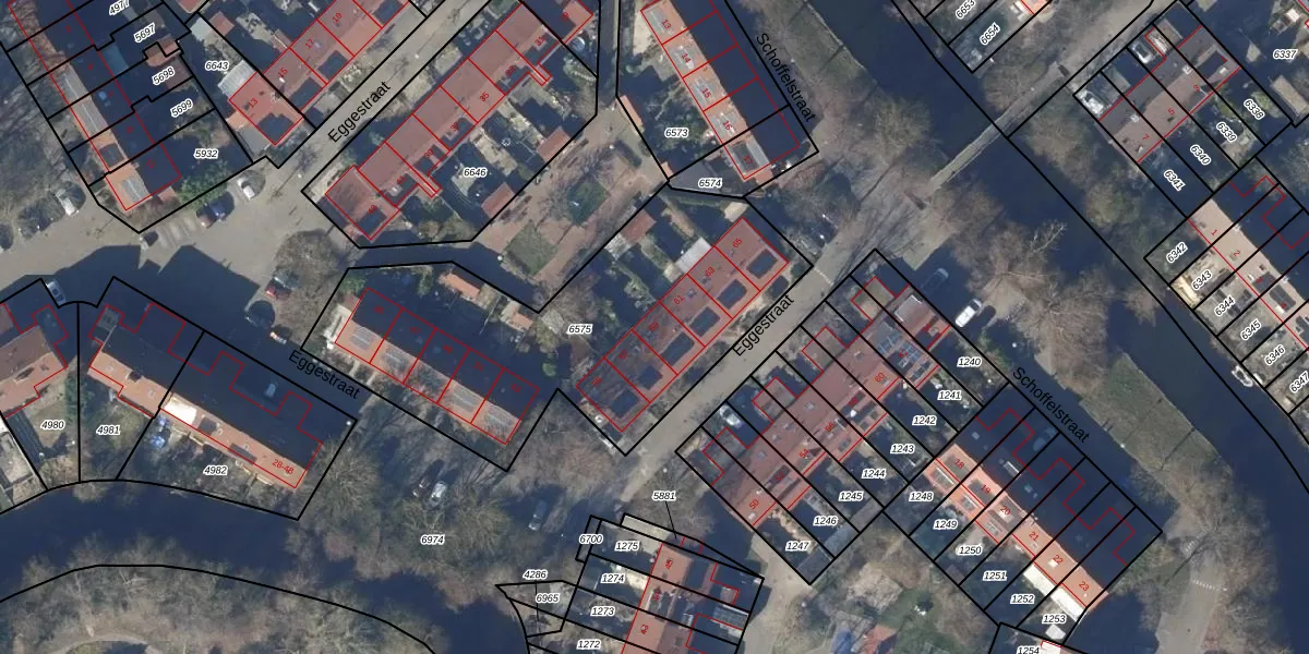 Het perceel waarop Eggestraat 59 staat heeft een oppervlakte van 1703 m². Dit is een zeer groot perceel. De perceeloppervlakte wordt geregistreerd door het Kadaster. Gedetailleerde informatie over de maten van dit perceel kunt u vinden in het rapport Kadastrale kaart met maatvoering van Eggestraat 59.