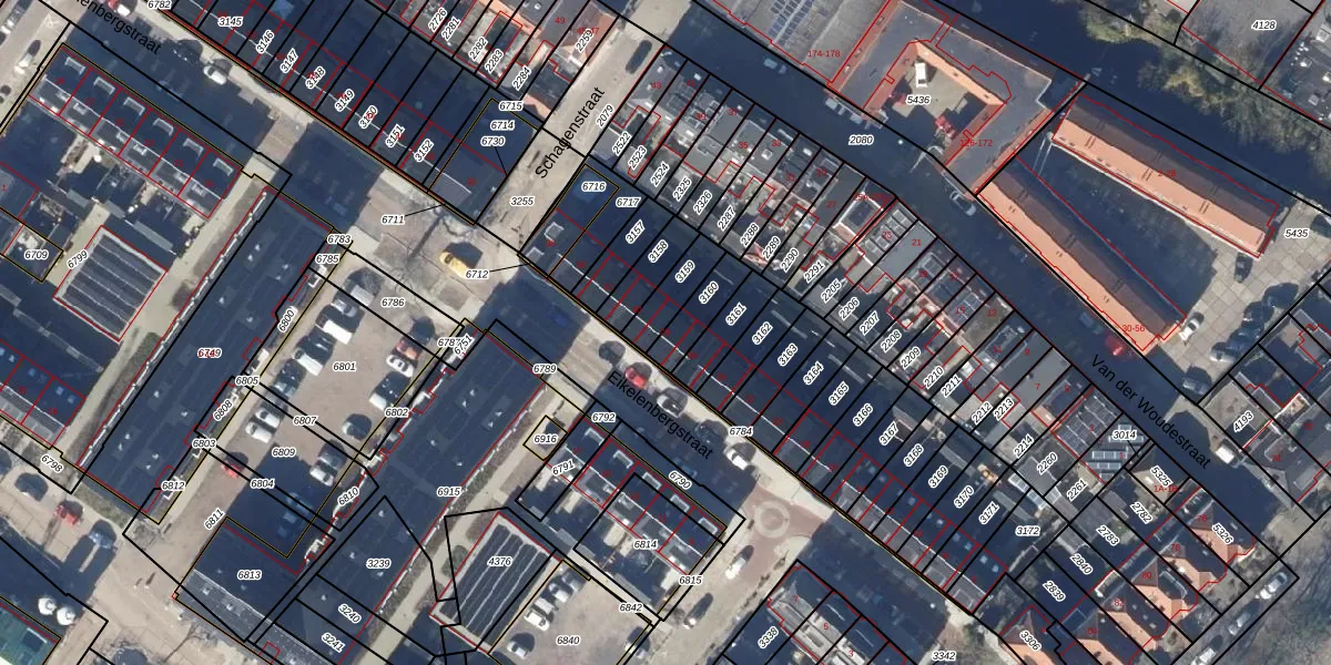 Gebruik de zoekbalk of klik op een perceel voor informatie over de adressen binnen dit perceel.