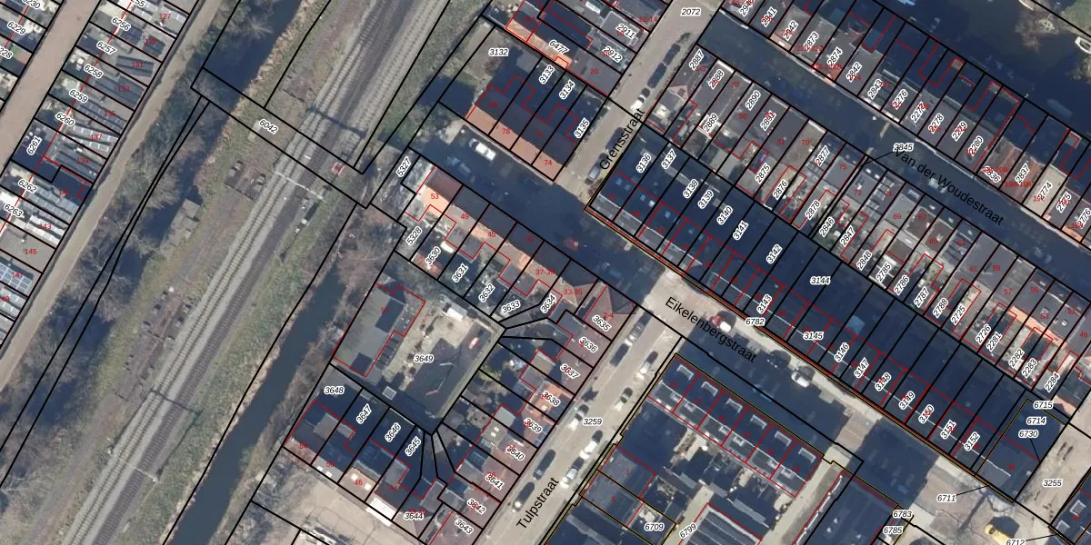 Het perceel waarop Eikelenbergstraat 37 staat heeft een oppervlakte van 88 m². Dit is een klein perceel. De perceeloppervlakte wordt geregistreerd door het Kadaster. Gedetailleerde informatie over de maten van dit perceel kunt u vinden in het rapport Kadastrale kaart met maatvoering van Eikelenbergstraat 37.