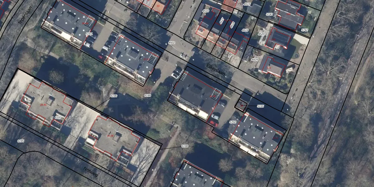 Het perceel waarop Eikenlaan 21 staat heeft een oppervlakte van 1340 m². Dit is een zeer groot perceel. De perceeloppervlakte wordt geregistreerd door het Kadaster. Gedetailleerde informatie over de maten van dit perceel kunt u vinden in het rapport Kadastrale kaart met maatvoering van Eikenlaan 21.