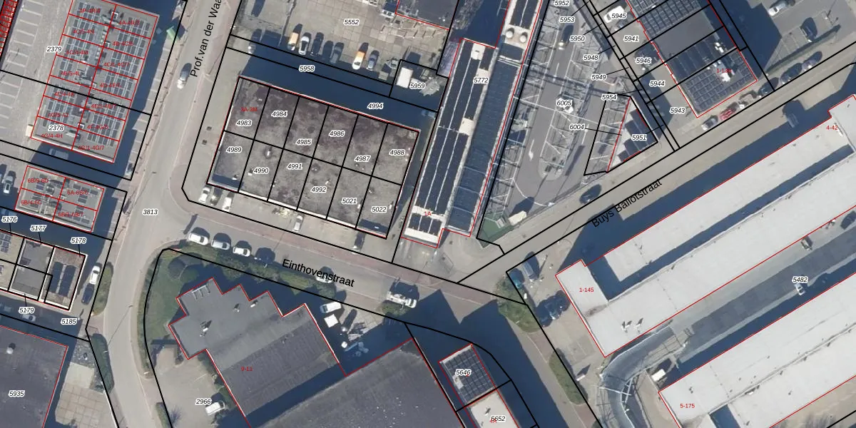 Het perceel waarop Einthovenstraat 1-A staat heeft een oppervlakte van 1750 m². Dit is een zeer groot perceel. De perceeloppervlakte wordt geregistreerd door het Kadaster. Gedetailleerde informatie over de maten van dit perceel kunt u vinden in het rapport Kadastrale kaart met maatvoering van Einthovenstraat 1-A.