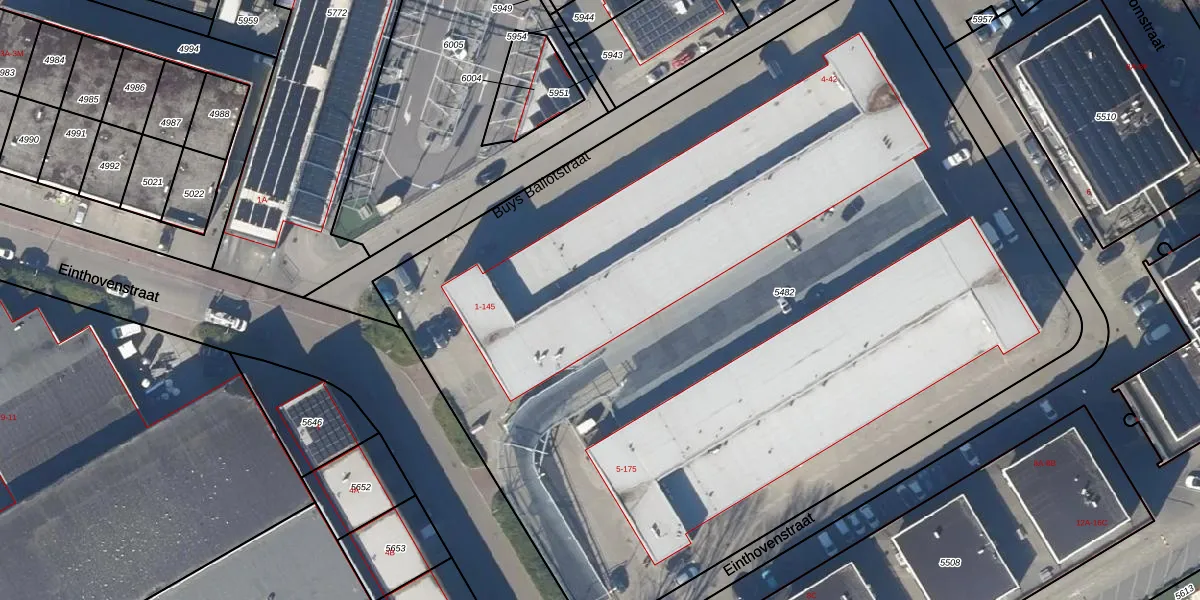 Het perceel waarop Einthovenstraat 115 staat heeft een oppervlakte van 6835 m². Dit is een zeer groot perceel. De perceeloppervlakte wordt geregistreerd door het Kadaster. Gedetailleerde informatie over de maten van dit perceel kunt u vinden in het rapport Kadastrale kaart met maatvoering van Einthovenstraat 115.