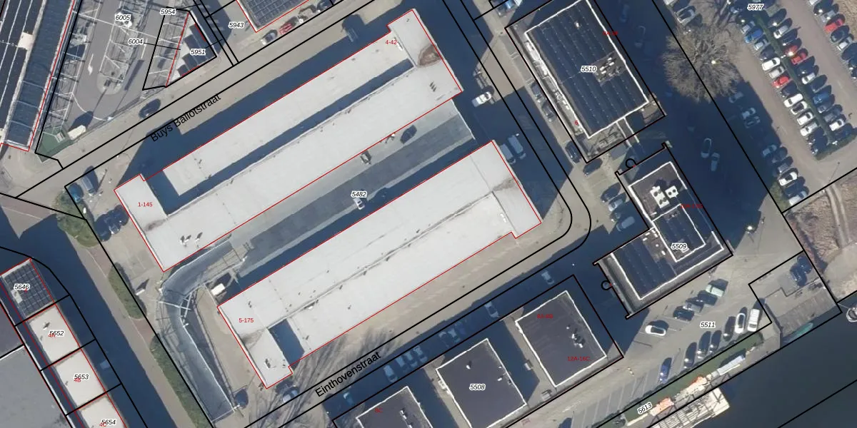 Het perceel waarop Einthovenstraat 147 staat heeft een oppervlakte van 6835 m². Dit is een zeer groot perceel. De perceeloppervlakte wordt geregistreerd door het Kadaster. Gedetailleerde informatie over de maten van dit perceel kunt u vinden in het rapport Kadastrale kaart met maatvoering van Einthovenstraat 147.