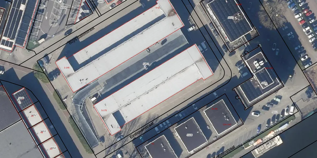 Het perceel waarop Einthovenstraat 153 staat heeft een oppervlakte van 6835 m². Dit is een zeer groot perceel. De perceeloppervlakte wordt geregistreerd door het Kadaster. Gedetailleerde informatie over de maten van dit perceel kunt u vinden in het rapport Kadastrale kaart met maatvoering van Einthovenstraat 153.