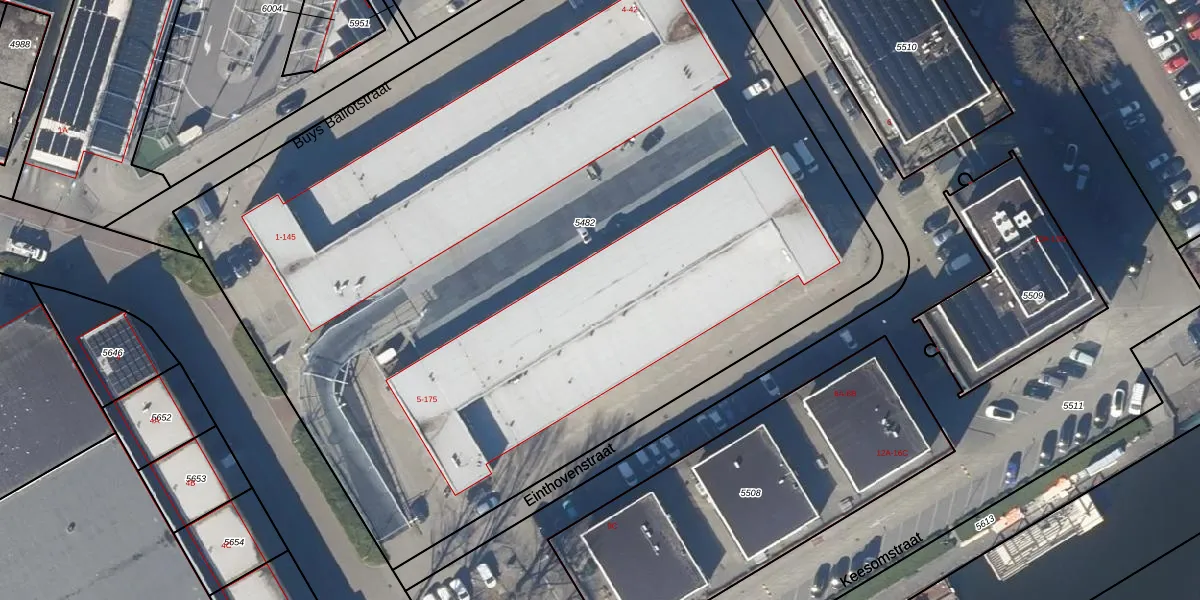 Het perceel waarop Einthovenstraat 157 staat heeft een oppervlakte van 6835 m². Dit is een zeer groot perceel. De perceeloppervlakte wordt geregistreerd door het Kadaster. Gedetailleerde informatie over de maten van dit perceel kunt u vinden in het rapport Kadastrale kaart met maatvoering van Einthovenstraat 157.