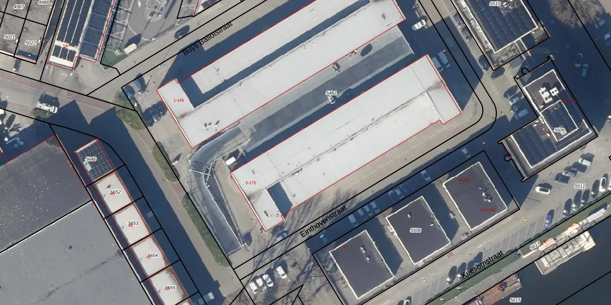 Het perceel waarop Einthovenstraat 165 staat heeft een oppervlakte van 6835 m². Dit is een zeer groot perceel. De perceeloppervlakte wordt geregistreerd door het Kadaster. Gedetailleerde informatie over de maten van dit perceel kunt u vinden in het rapport Kadastrale kaart met maatvoering van Einthovenstraat 165.