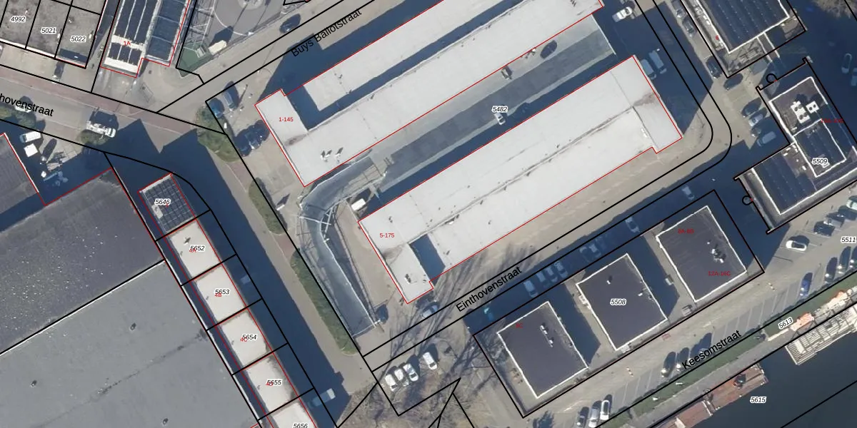 Het perceel waarop Einthovenstraat 171 staat heeft een oppervlakte van 6835 m². Dit is een zeer groot perceel. De perceeloppervlakte wordt geregistreerd door het Kadaster. Gedetailleerde informatie over de maten van dit perceel kunt u vinden in het rapport Kadastrale kaart met maatvoering van Einthovenstraat 171.