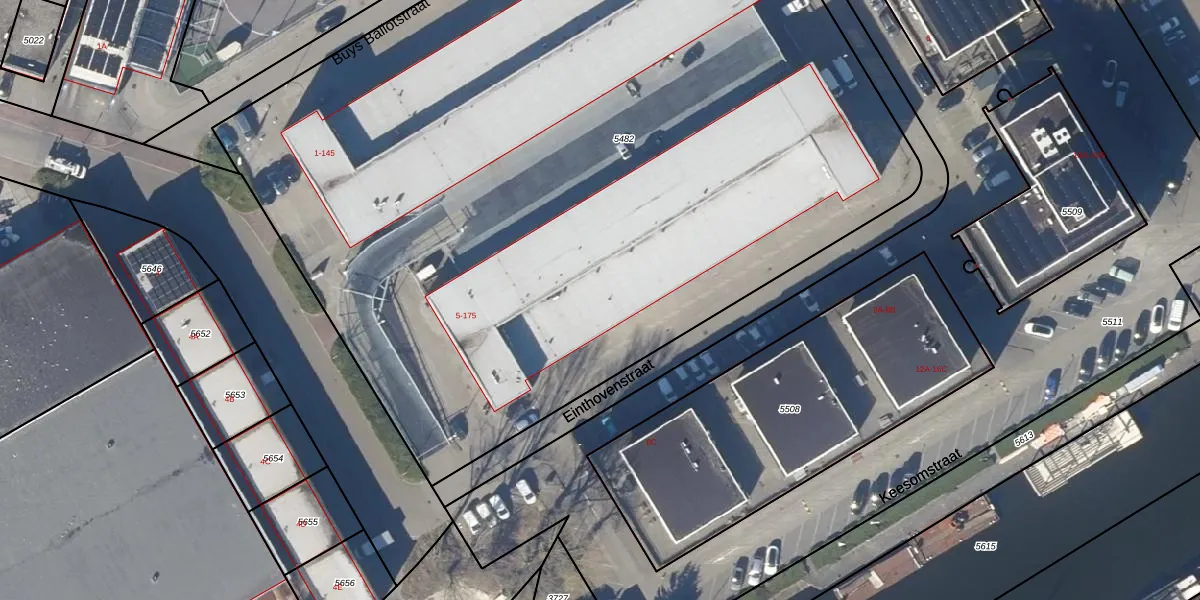 Het perceel waarop Einthovenstraat 19 staat heeft een oppervlakte van 6835 m². Dit is een zeer groot perceel. De perceeloppervlakte wordt geregistreerd door het Kadaster. Gedetailleerde informatie over de maten van dit perceel kunt u vinden in het rapport Kadastrale kaart met maatvoering van Einthovenstraat 19.