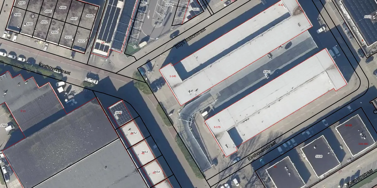 Het perceel waarop Einthovenstraat 3 staat heeft een oppervlakte van 6835 m². Dit is een zeer groot perceel. De perceeloppervlakte wordt geregistreerd door het Kadaster. Gedetailleerde informatie over de maten van dit perceel kunt u vinden in het rapport Kadastrale kaart met maatvoering van Einthovenstraat 3.