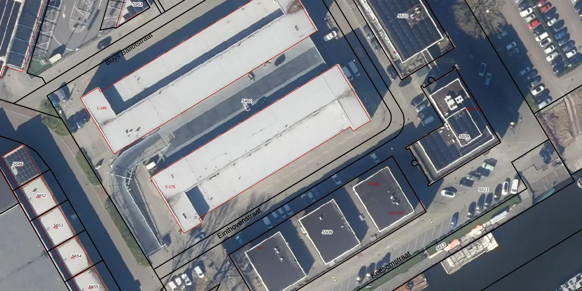 Het perceel waarop Einthovenstraat 33 staat heeft een oppervlakte van 6835 m². Dit is een zeer groot perceel. De perceeloppervlakte wordt geregistreerd door het Kadaster. Gedetailleerde informatie over de maten van dit perceel kunt u vinden in het rapport Kadastrale kaart met maatvoering van Einthovenstraat 33.