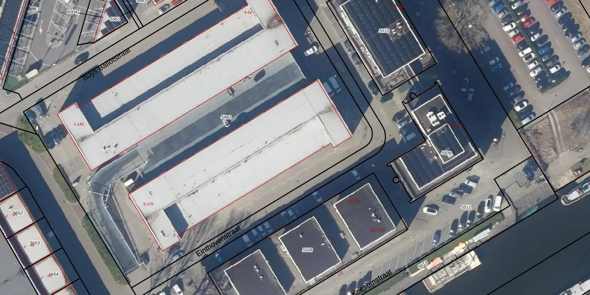Het perceel waarop Einthovenstraat 39 staat heeft een oppervlakte van 6835 m². Dit is een zeer groot perceel. De perceeloppervlakte wordt geregistreerd door het Kadaster. Gedetailleerde informatie over de maten van dit perceel kunt u vinden in het rapport Kadastrale kaart met maatvoering van Einthovenstraat 39.