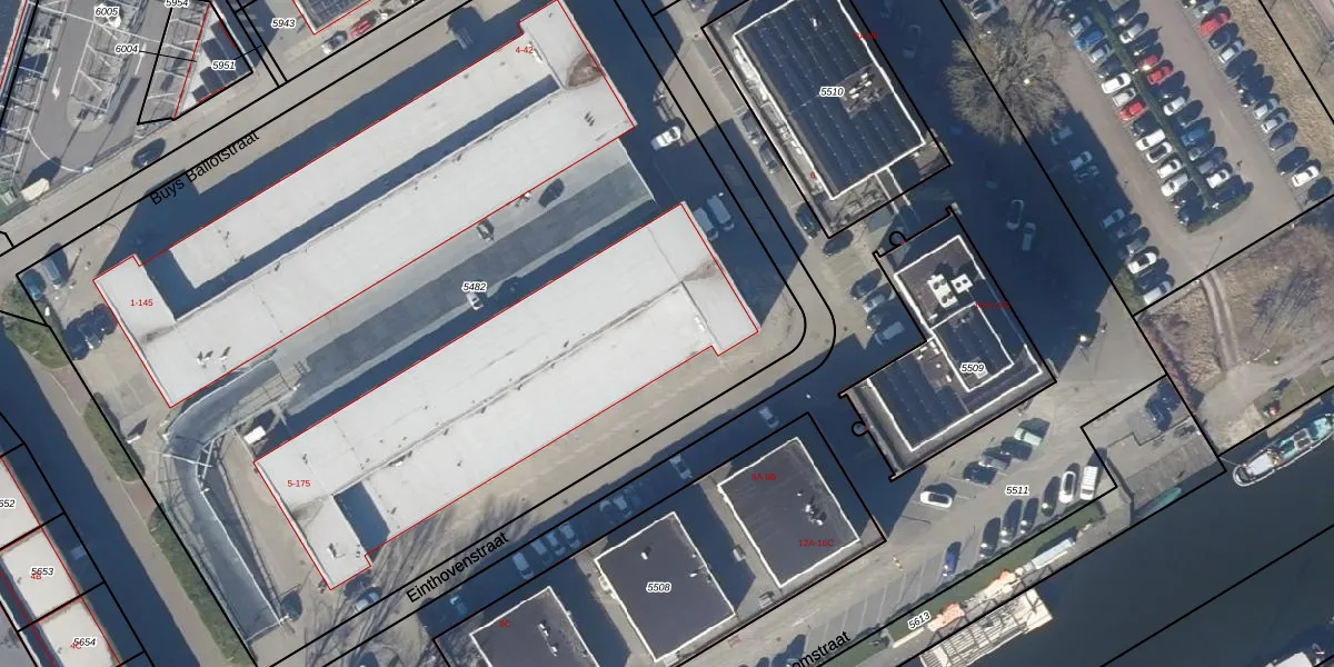 Het perceel waarop Einthovenstraat 43 staat heeft een oppervlakte van 6835 m². Dit is een zeer groot perceel. De perceeloppervlakte wordt geregistreerd door het Kadaster. Gedetailleerde informatie over de maten van dit perceel kunt u vinden in het rapport Kadastrale kaart met maatvoering van Einthovenstraat 43.
