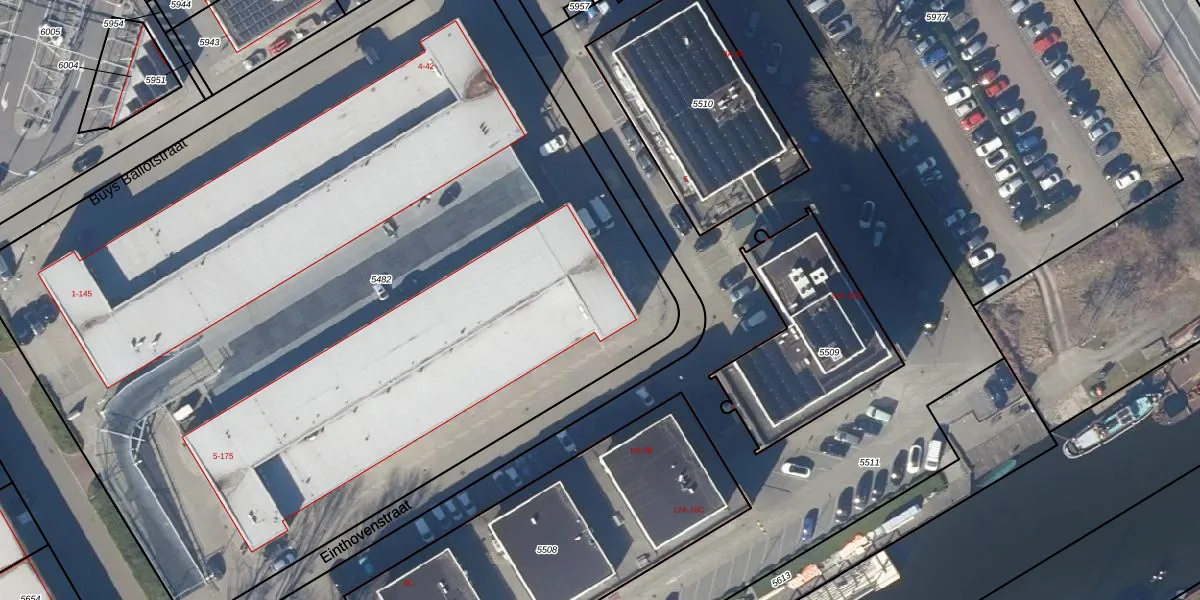 Het perceel waarop Einthovenstraat 47 staat heeft een oppervlakte van 6835 m². Dit is een zeer groot perceel. De perceeloppervlakte wordt geregistreerd door het Kadaster. Gedetailleerde informatie over de maten van dit perceel kunt u vinden in het rapport Kadastrale kaart met maatvoering van Einthovenstraat 47.