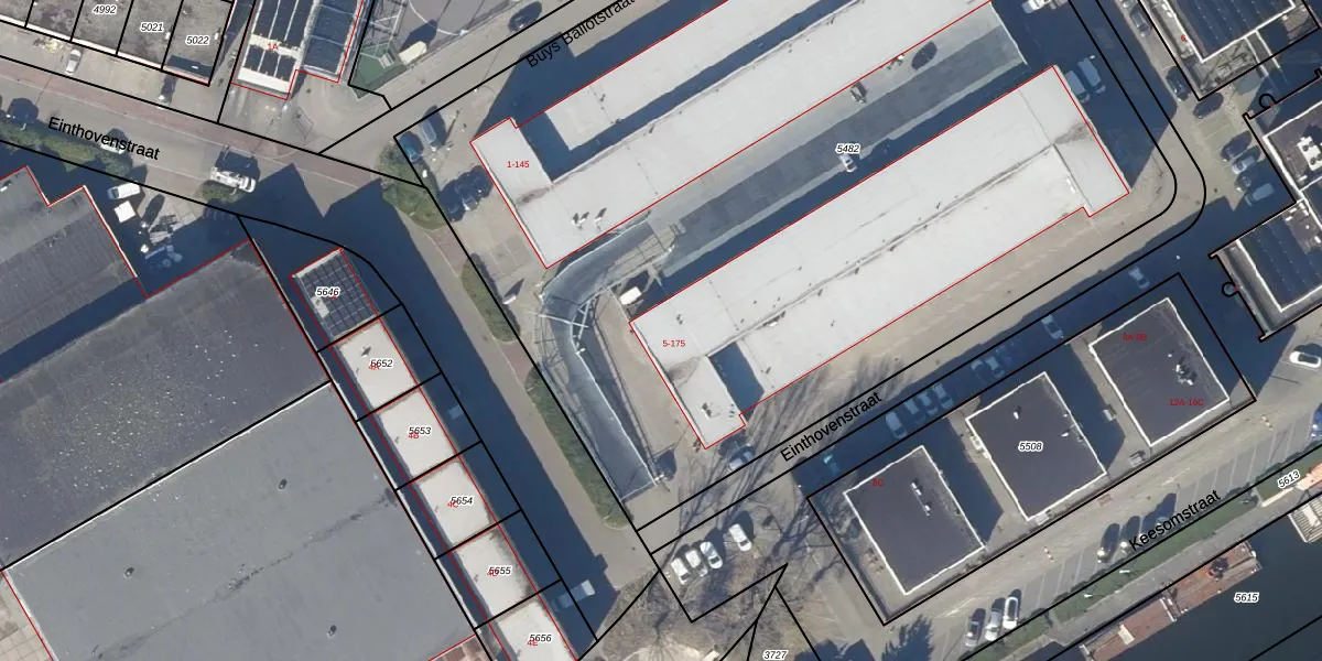 Het perceel waarop Einthovenstraat 5 staat heeft een oppervlakte van 6835 m². Dit is een zeer groot perceel. De perceeloppervlakte wordt geregistreerd door het Kadaster. Gedetailleerde informatie over de maten van dit perceel kunt u vinden in het rapport Kadastrale kaart met maatvoering van Einthovenstraat 5.