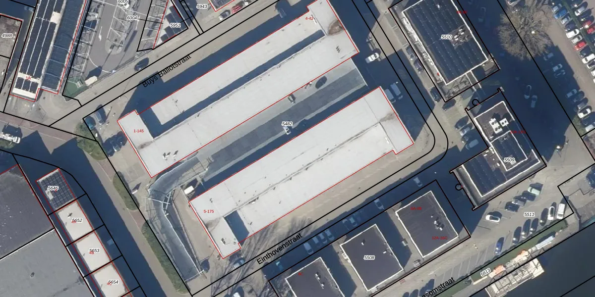 Het perceel waarop Einthovenstraat 59 staat heeft een oppervlakte van 6835 m². Dit is een zeer groot perceel. De perceeloppervlakte wordt geregistreerd door het Kadaster. Gedetailleerde informatie over de maten van dit perceel kunt u vinden in het rapport Kadastrale kaart met maatvoering van Einthovenstraat 59.