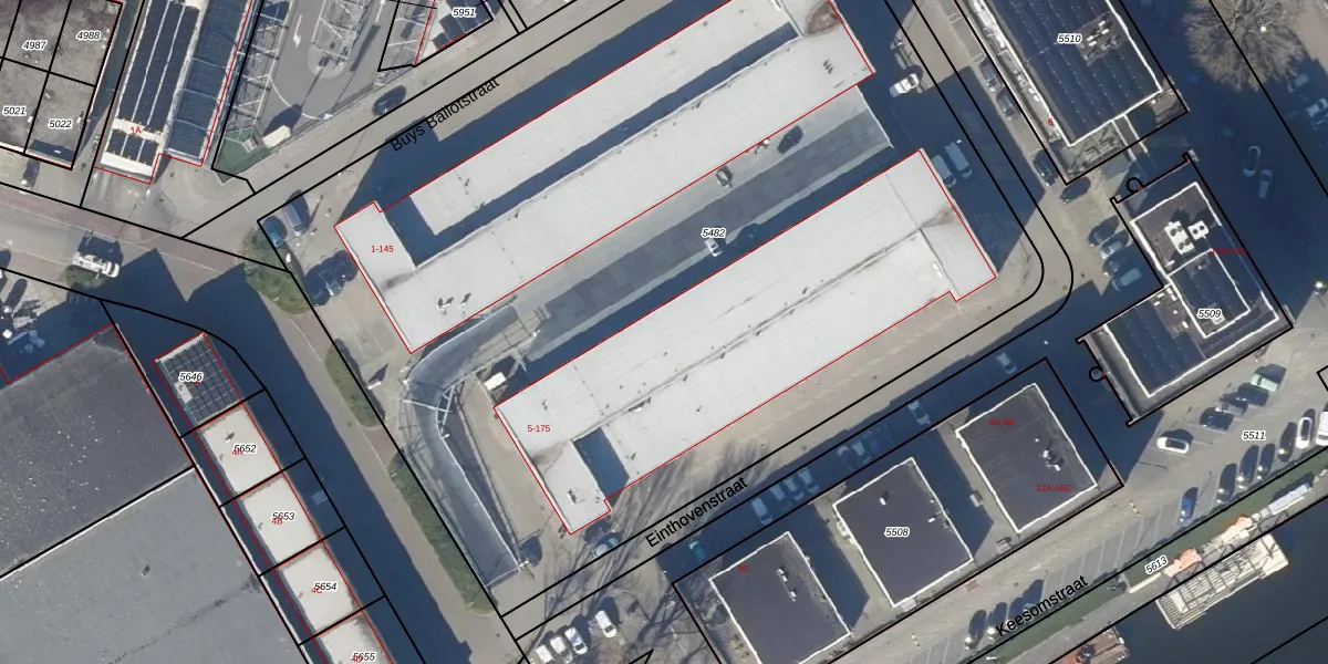 Het perceel waarop Einthovenstraat 67 staat heeft een oppervlakte van 6835 m². Dit is een zeer groot perceel. De perceeloppervlakte wordt geregistreerd door het Kadaster. Gedetailleerde informatie over de maten van dit perceel kunt u vinden in het rapport Kadastrale kaart met maatvoering van Einthovenstraat 67.