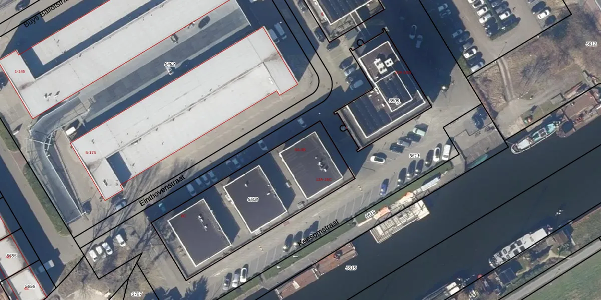 Het perceel waarop Einthovenstraat 8-A staat heeft een oppervlakte van 1479 m². Dit is een zeer groot perceel. De perceeloppervlakte wordt geregistreerd door het Kadaster. Gedetailleerde informatie over de maten van dit perceel kunt u vinden in het rapport Kadastrale kaart met maatvoering van Einthovenstraat 8-A.