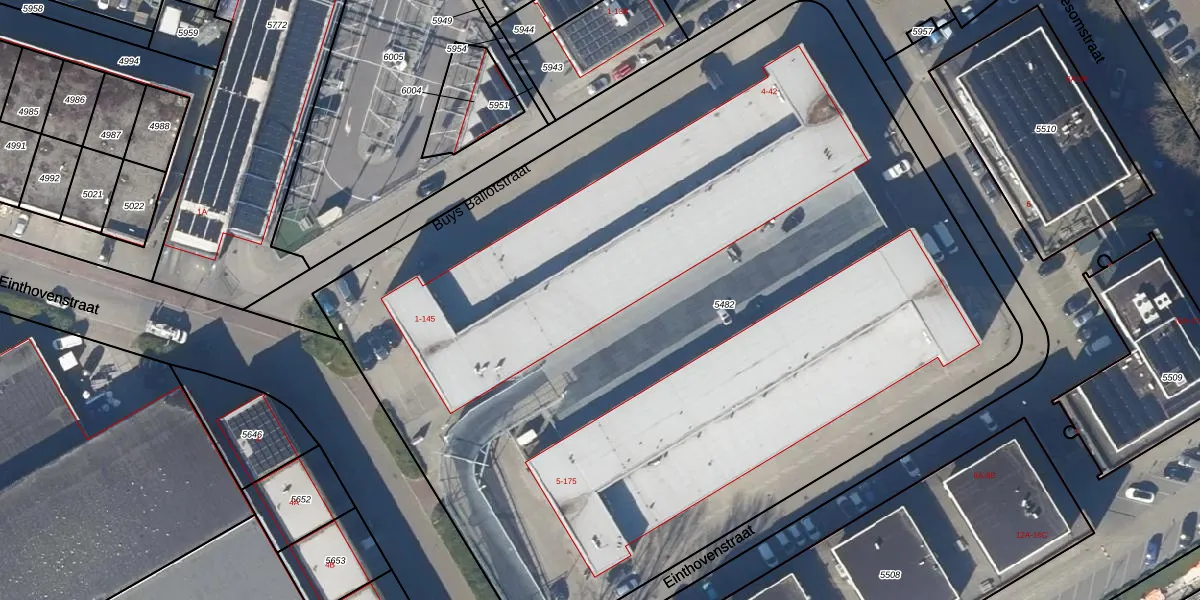 Het perceel waarop Einthovenstraat 83 staat heeft een oppervlakte van 6835 m². Dit is een zeer groot perceel. De perceeloppervlakte wordt geregistreerd door het Kadaster. Gedetailleerde informatie over de maten van dit perceel kunt u vinden in het rapport Kadastrale kaart met maatvoering van Einthovenstraat 83.