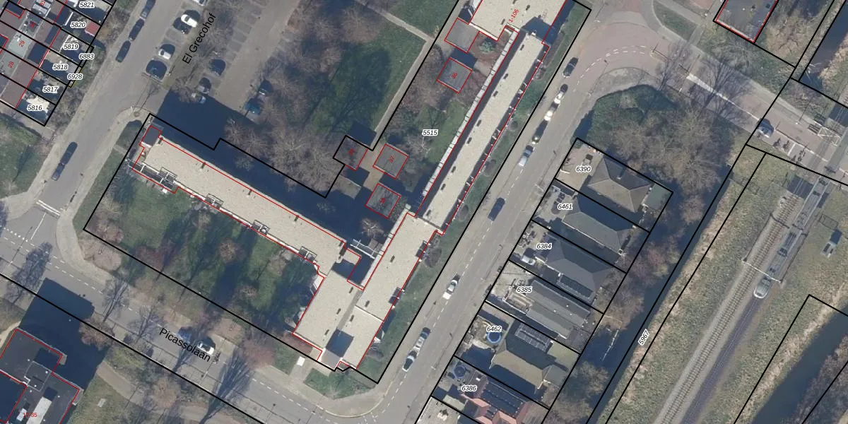 Het perceel waarop El Grecohof 20 staat heeft een oppervlakte van 4679 m². Dit is een zeer groot perceel. De perceeloppervlakte wordt geregistreerd door het Kadaster. Gedetailleerde informatie over de maten van dit perceel kunt u vinden in het rapport Kadastrale kaart met maatvoering van El Grecohof 20.
