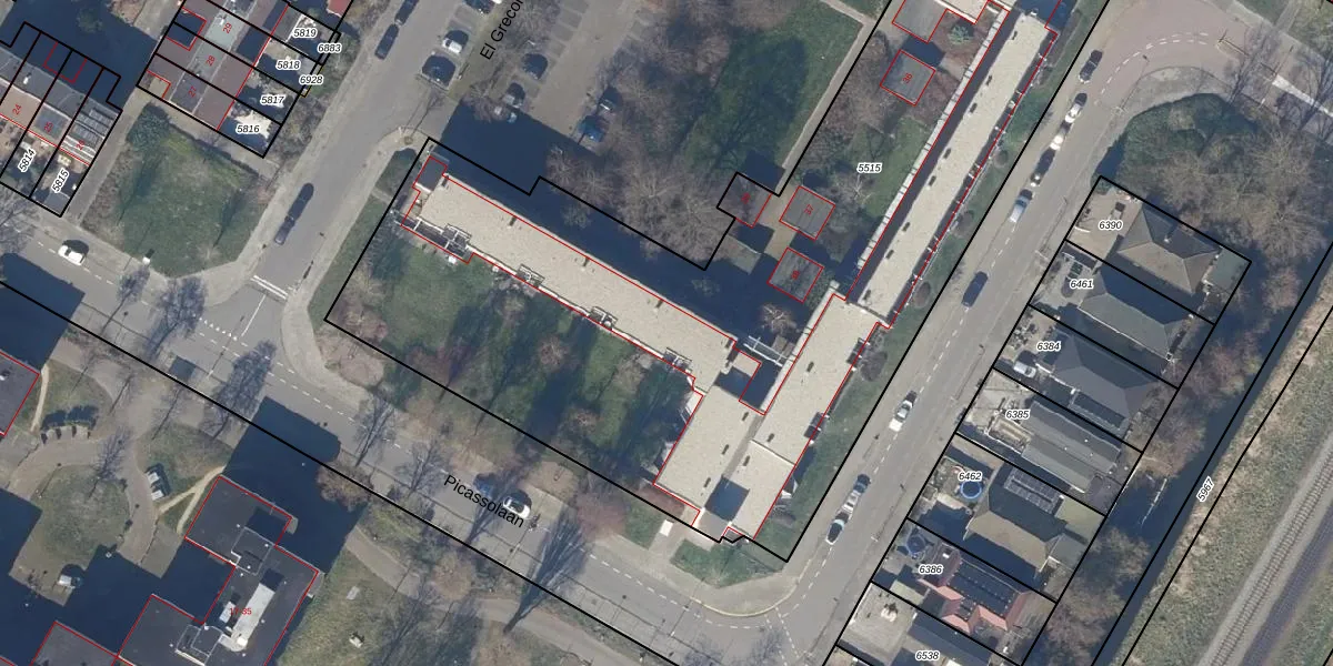 Het perceel waarop El Grecohof 46 staat heeft een oppervlakte van 4679 m². Dit is een zeer groot perceel. De perceeloppervlakte wordt geregistreerd door het Kadaster. Gedetailleerde informatie over de maten van dit perceel kunt u vinden in het rapport Kadastrale kaart met maatvoering van El Grecohof 46.