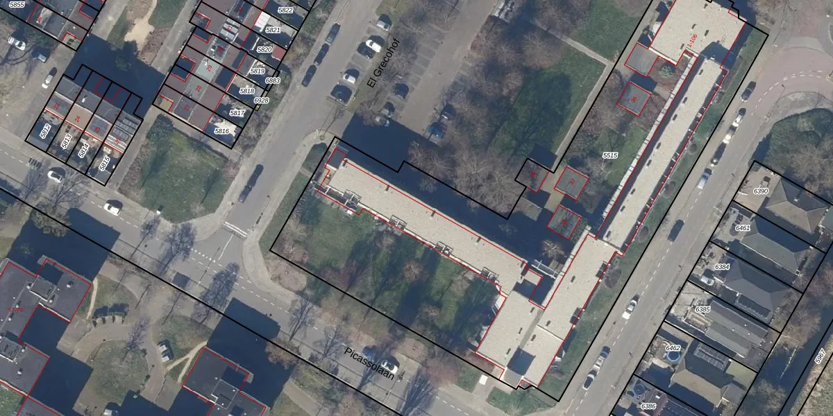 Het perceel waarop El Grecohof 5 staat heeft een oppervlakte van 4679 m². Dit is een zeer groot perceel. De perceeloppervlakte wordt geregistreerd door het Kadaster. Gedetailleerde informatie over de maten van dit perceel kunt u vinden in het rapport Kadastrale kaart met maatvoering van El Grecohof 5.