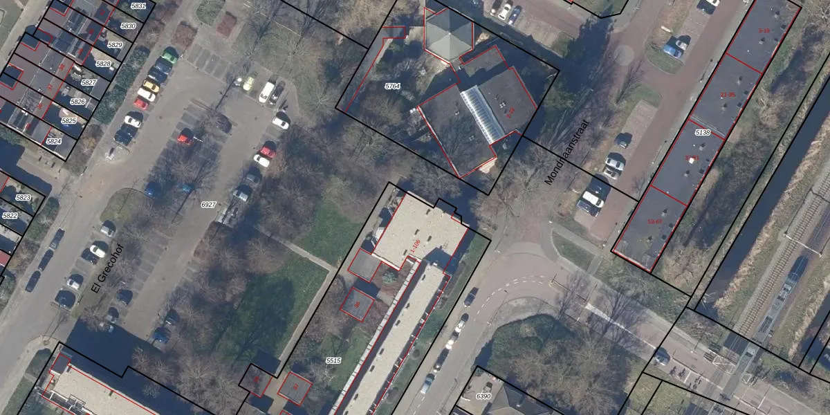 Het perceel waarop El Grecohof 68 staat heeft een oppervlakte van 4679 m². Dit is een zeer groot perceel. De perceeloppervlakte wordt geregistreerd door het Kadaster. Gedetailleerde informatie over de maten van dit perceel kunt u vinden in het rapport Kadastrale kaart met maatvoering van El Grecohof 68.