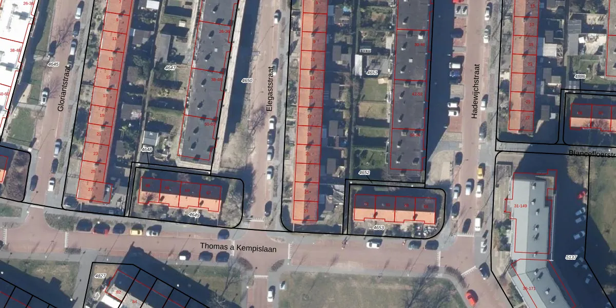 Het perceel waarop Elegaststraat 21 staat heeft een oppervlakte van 4135 m². Dit is een zeer groot perceel. De perceeloppervlakte wordt geregistreerd door het Kadaster. Gedetailleerde informatie over de maten van dit perceel kunt u vinden in het rapport Kadastrale kaart met maatvoering van Elegaststraat 21.