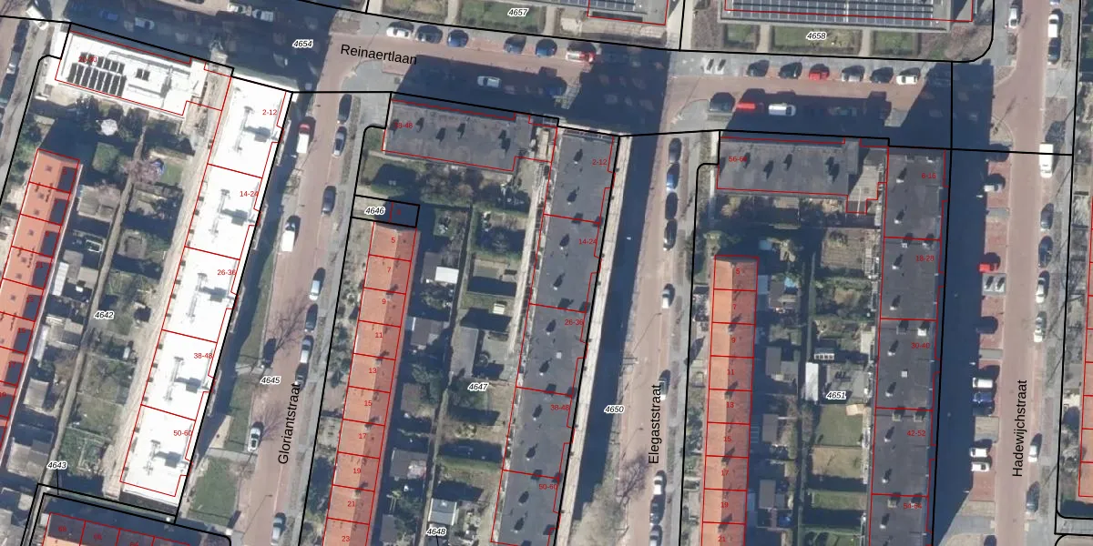 Het perceel waarop Elegaststraat 24 staat heeft een oppervlakte van 4112 m². Dit is een zeer groot perceel. De perceeloppervlakte wordt geregistreerd door het Kadaster. Gedetailleerde informatie over de maten van dit perceel kunt u vinden in het rapport Kadastrale kaart met maatvoering van Elegaststraat 24.