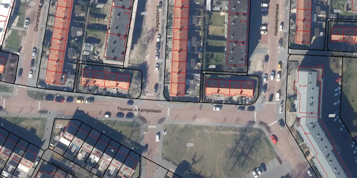 Het perceel waarop Elegaststraat 27 staat heeft een oppervlakte van 4135 m². Dit is een zeer groot perceel. De perceeloppervlakte wordt geregistreerd door het Kadaster. Gedetailleerde informatie over de maten van dit perceel kunt u vinden in het rapport Kadastrale kaart met maatvoering van Elegaststraat 27.