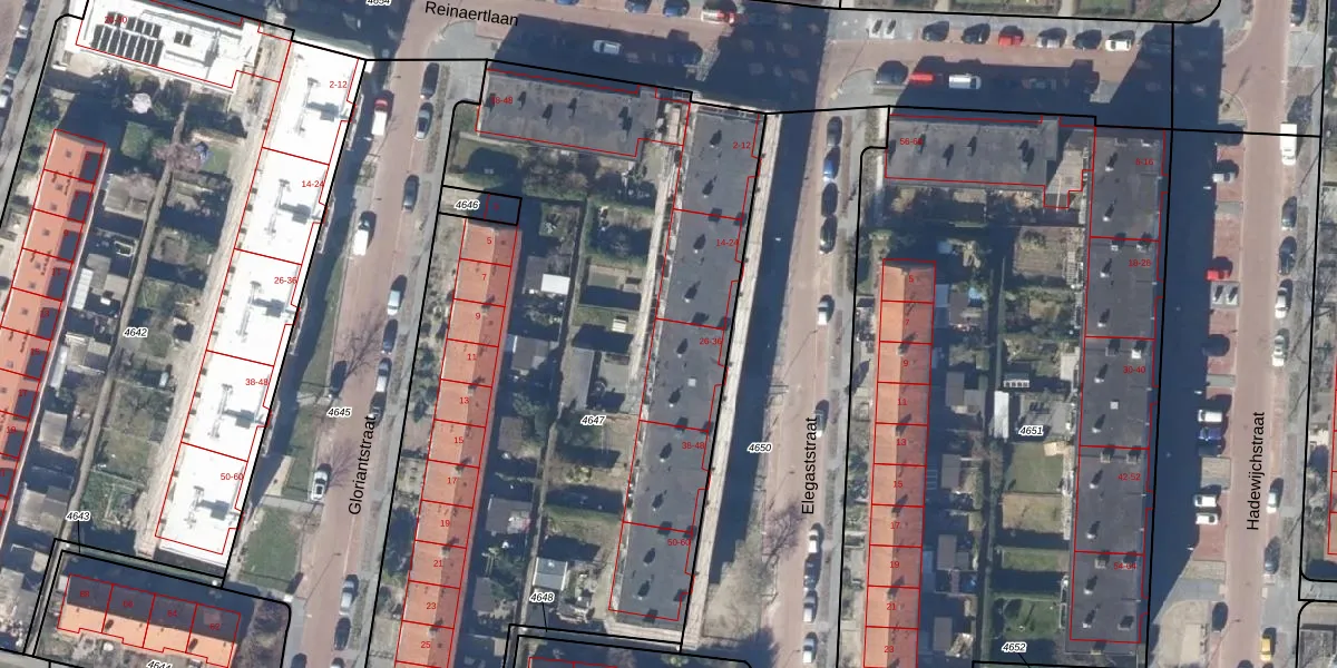 Het perceel waarop Elegaststraat 34 staat heeft een oppervlakte van 4112 m². Dit is een zeer groot perceel. De perceeloppervlakte wordt geregistreerd door het Kadaster. Gedetailleerde informatie over de maten van dit perceel kunt u vinden in het rapport Kadastrale kaart met maatvoering van Elegaststraat 34.