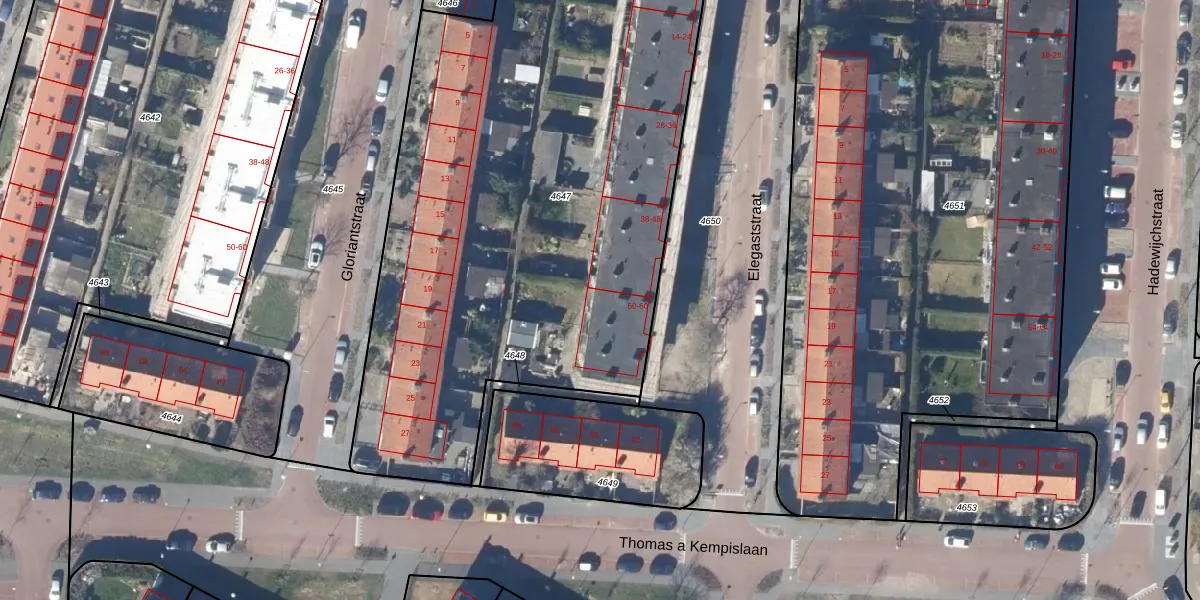 Het perceel waarop Elegaststraat 58 staat heeft een oppervlakte van 4112 m². Dit is een zeer groot perceel. De perceeloppervlakte wordt geregistreerd door het Kadaster. Gedetailleerde informatie over de maten van dit perceel kunt u vinden in het rapport Kadastrale kaart met maatvoering van Elegaststraat 58.