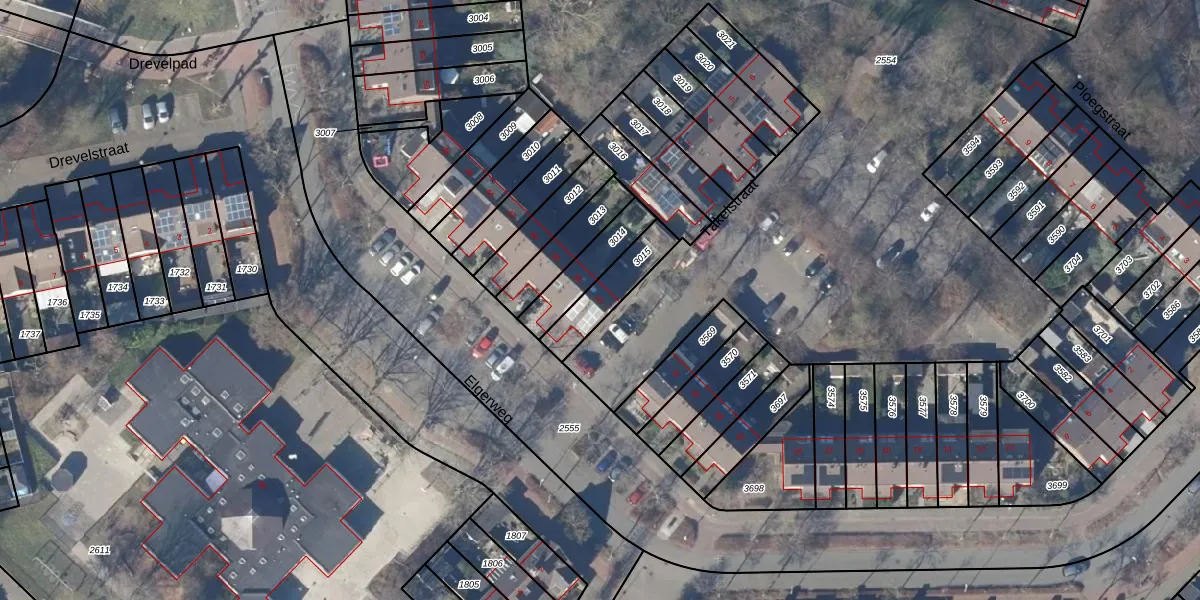 Gebruik de zoekbalk of klik op een perceel voor informatie over de adressen binnen dit perceel.