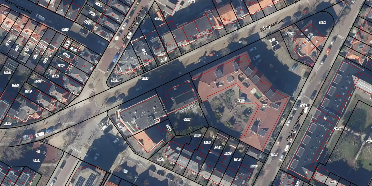 Het perceel waarop Emmastraat 16 staat heeft een oppervlakte van 573 m². Dit is een groot perceel. De perceeloppervlakte wordt geregistreerd door het Kadaster. Gedetailleerde informatie over de maten van dit perceel kunt u vinden in het rapport Kadastrale kaart met maatvoering van Emmastraat 16.