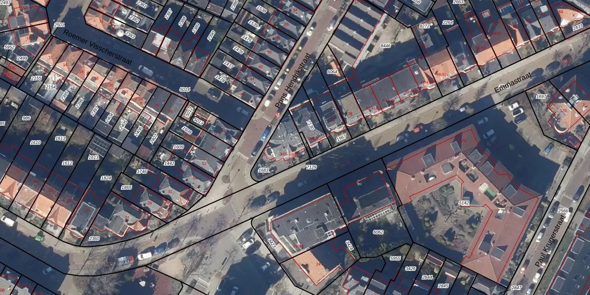 Het perceel waarop Emmastraat 33-E staat heeft een oppervlakte van 233 m². Dit is een middelgroot perceel. De perceeloppervlakte wordt geregistreerd door het Kadaster. Gedetailleerde informatie over de maten van dit perceel kunt u vinden in het rapport Kadastrale kaart met maatvoering van Emmastraat 33-E.