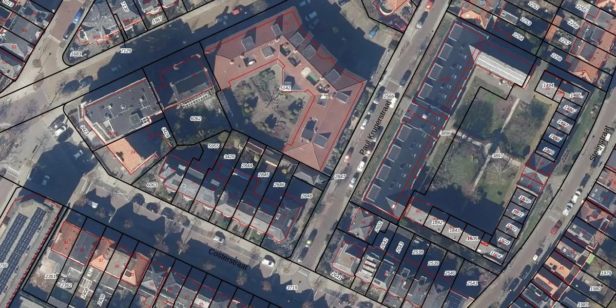 Het perceel waarop Emmastraat 50 staat heeft een oppervlakte van 2539 m². Dit is een zeer groot perceel. De perceeloppervlakte wordt geregistreerd door het Kadaster. Gedetailleerde informatie over de maten van dit perceel kunt u vinden in het rapport Kadastrale kaart met maatvoering van Emmastraat 50.