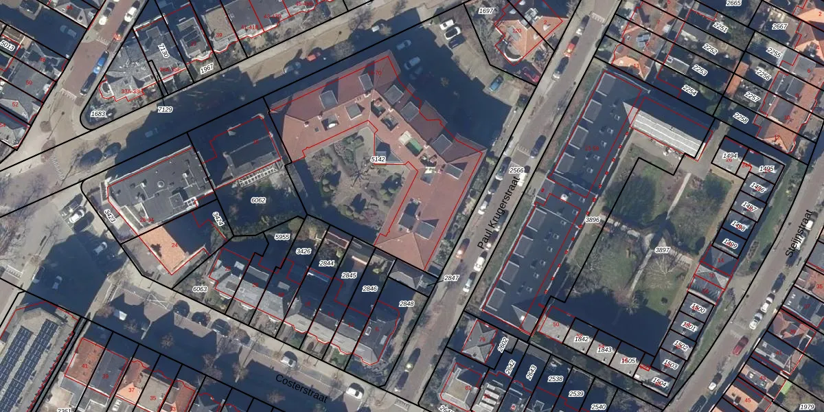 Het perceel waarop Emmastraat 68 staat heeft een oppervlakte van 2539 m². Dit is een zeer groot perceel. De perceeloppervlakte wordt geregistreerd door het Kadaster. Gedetailleerde informatie over de maten van dit perceel kunt u vinden in het rapport Kadastrale kaart met maatvoering van Emmastraat 68.