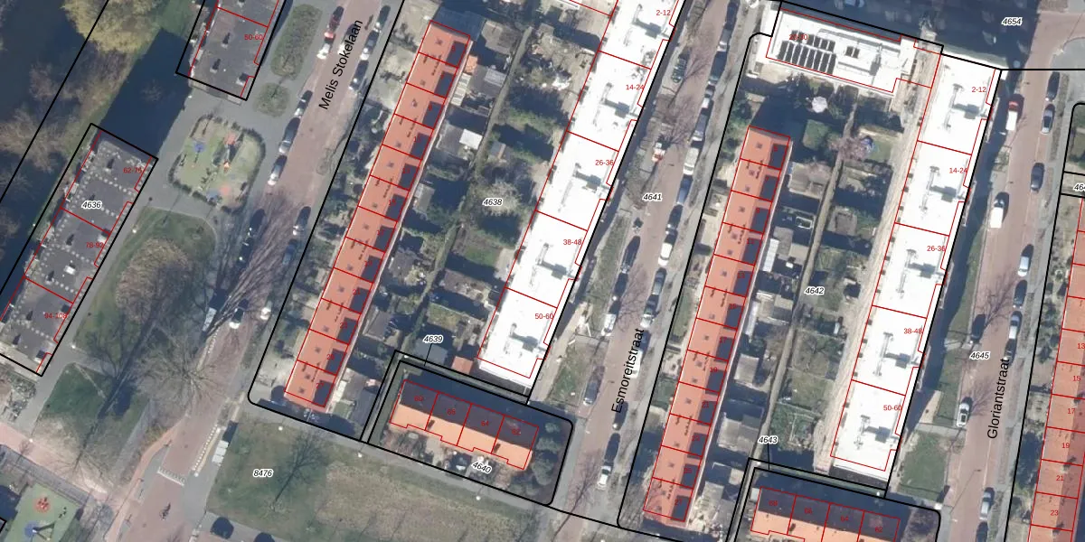Het perceel waarop Esmoreitstraat 44 staat heeft een oppervlakte van 4339 m². Dit is een zeer groot perceel. De perceeloppervlakte wordt geregistreerd door het Kadaster. Gedetailleerde informatie over de maten van dit perceel kunt u vinden in het rapport Kadastrale kaart met maatvoering van Esmoreitstraat 44.