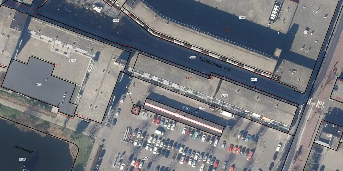 Het perceel waarop Europaboulevard 139 staat heeft een oppervlakte van 1518 m². Dit is een zeer groot perceel. De perceeloppervlakte wordt geregistreerd door het Kadaster. Gedetailleerde informatie over de maten van dit perceel kunt u vinden in het rapport Kadastrale kaart met maatvoering van Europaboulevard 139.