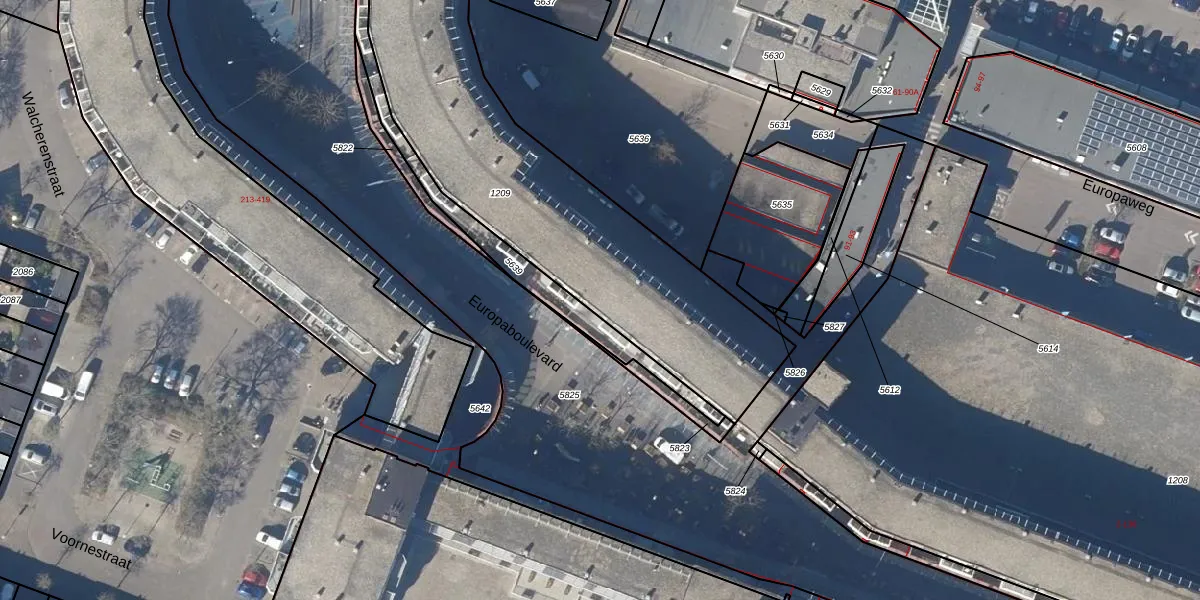 Het perceel waarop Europaboulevard 162 staat heeft een oppervlakte van 1770 m². Dit is een zeer groot perceel. De perceeloppervlakte wordt geregistreerd door het Kadaster. Gedetailleerde informatie over de maten van dit perceel kunt u vinden in het rapport Kadastrale kaart met maatvoering van Europaboulevard 162.