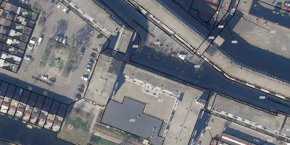 Het perceel waarop Europaboulevard 189 staat heeft een oppervlakte van 2594 m². Dit is een zeer groot perceel. De perceeloppervlakte wordt geregistreerd door het Kadaster. Gedetailleerde informatie over de maten van dit perceel kunt u vinden in het rapport Kadastrale kaart met maatvoering van Europaboulevard 189.