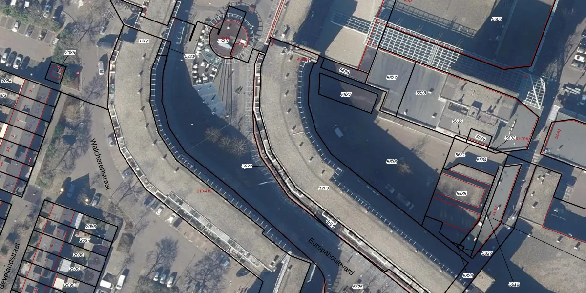 Het perceel waarop Europaboulevard 190 staat heeft een oppervlakte van 1770 m². Dit is een zeer groot perceel. De perceeloppervlakte wordt geregistreerd door het Kadaster. Gedetailleerde informatie over de maten van dit perceel kunt u vinden in het rapport Kadastrale kaart met maatvoering van Europaboulevard 190.